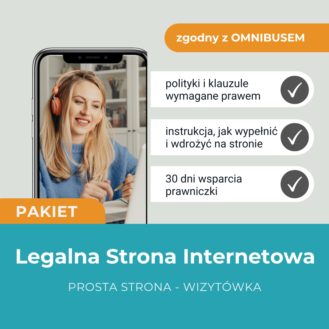 Pakiet niezbędnych dokumentów i instrukcji, dzięki którym Twoja prosta strona (np. wizytówka lub landing page) będzie zgodna z obowiązującym prawem, w tym dyrektywą OMNIBUS.